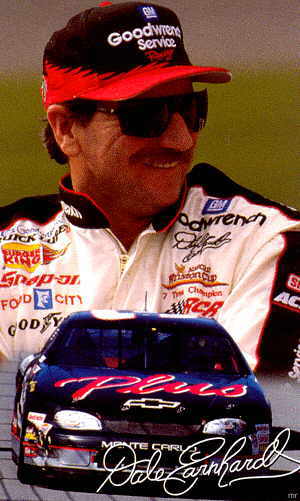 I am a Nascar fan, as you can tell, and this is MY favorite driver. Now if that doesn't scare you away, from my site, then great. I will soon have a page up in tribute to Dale and other drivers. Yes, Jeff also. I not only will include Nascar, but other venues. But, since Dale is my main man, I had to have him on my main intro page.